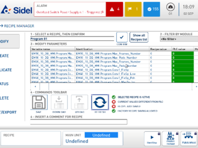 or wrong (red) adjustment - Optimal adjustment values recorded in the PLC