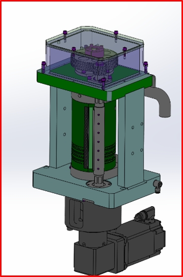 Twin roller system, driven by gears motion (ratio of 1:4)
