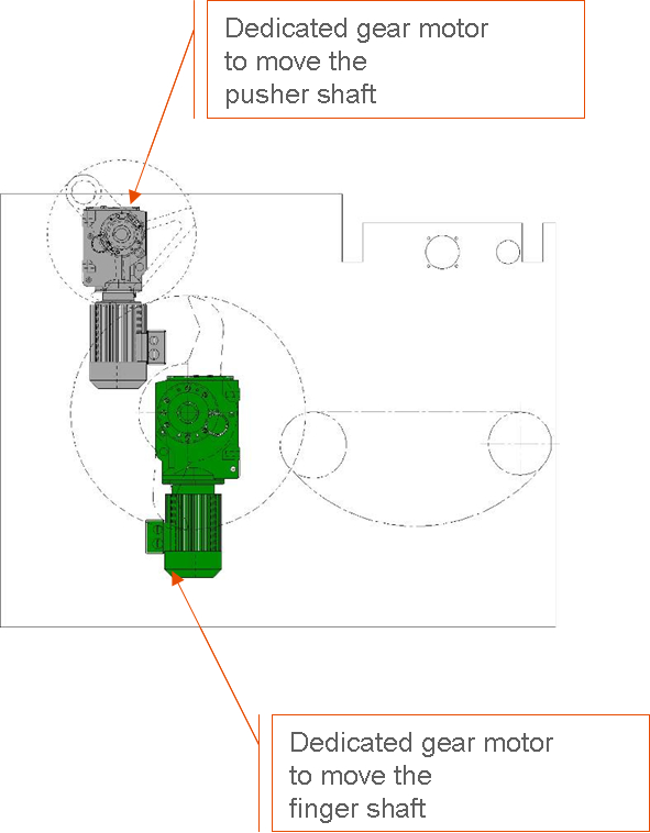 - Installation of two gear motors: One moves the pusher shaft and the second moves the finger shaft