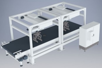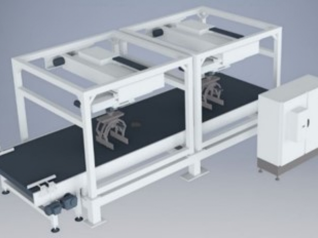 -The device is programmed according to the product to be treated and the need for composition of the layer, being integrated according to the palletizer or robot, upon their entry. In consideration of the required execution speed, the machine is equipped with one or two modules.