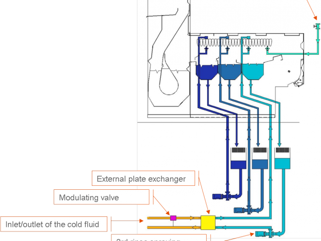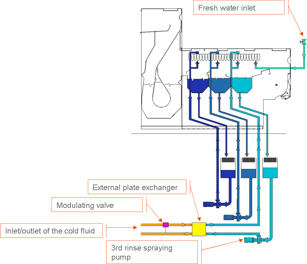 - External plate exchanger installed in the 3rd rinser spraying pump circuit