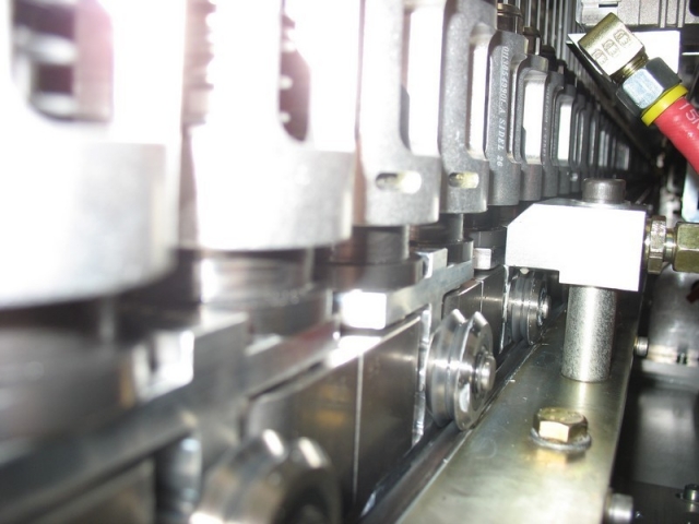 With a V shape rail fitted with hardened and grinded edges, the life of the spindle guiding is extended.