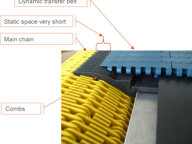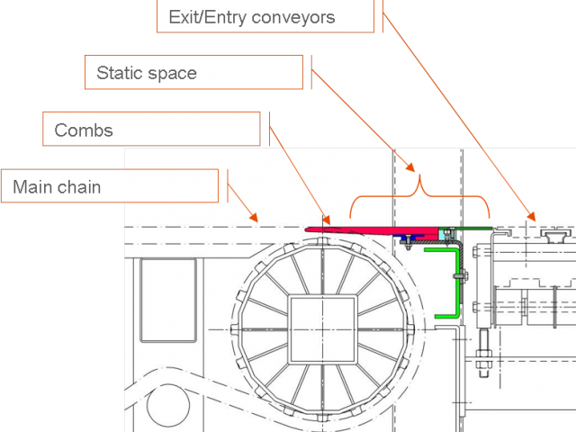 • Flexibility due to direct transfer of the bottles between conveyors and main belt