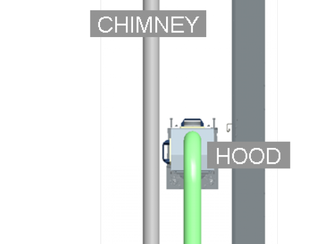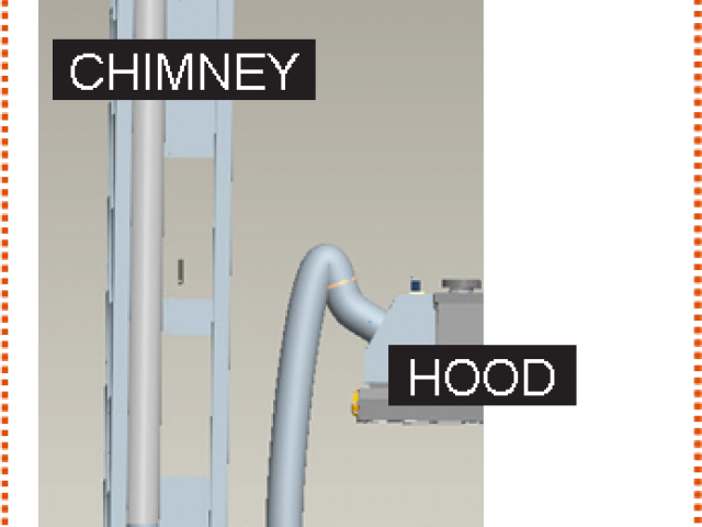 -A fan aspirator placed at the end of the chimney, on the top of the labeler