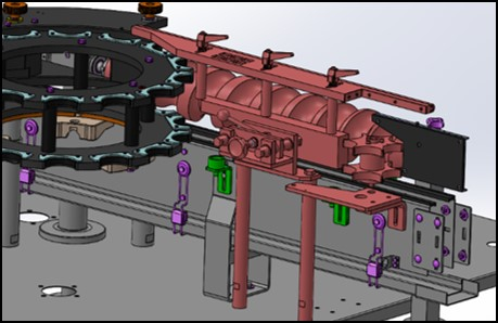 -The infeed screw is replaced by transfer stars with rollers