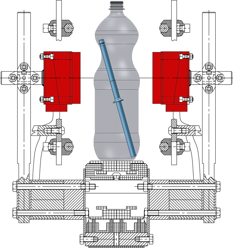The new system for detection of filling nozzle in the bottle consists of a group of sensors on the outfeed conveyor of the machine.