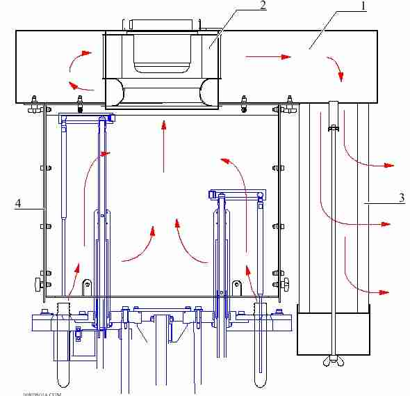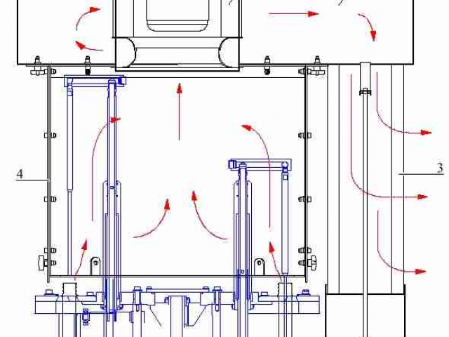 -The air suction hood comprises a turbine fan in a sealed housing, a particle filter and two baffles to channel air suction flow