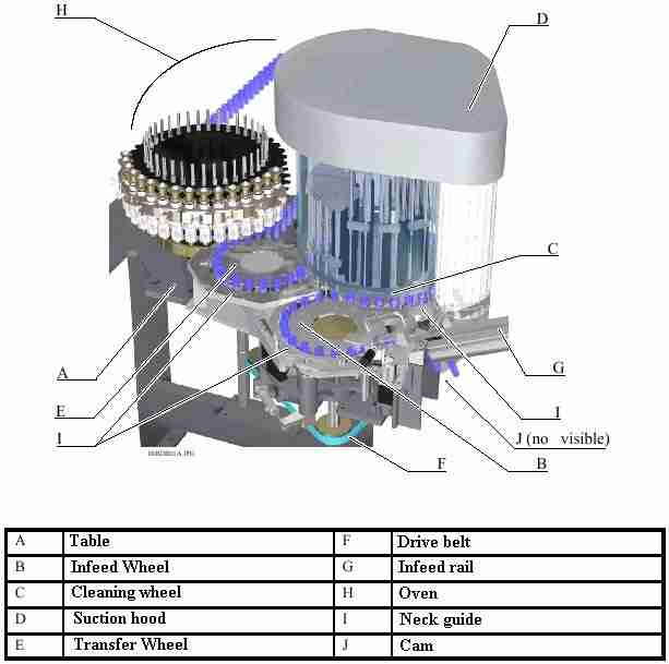-Drive for the rotation of the feed wheel, the dedust wheel and the transfer wheel is provided by a belt itself driven by the oven transmission shaft