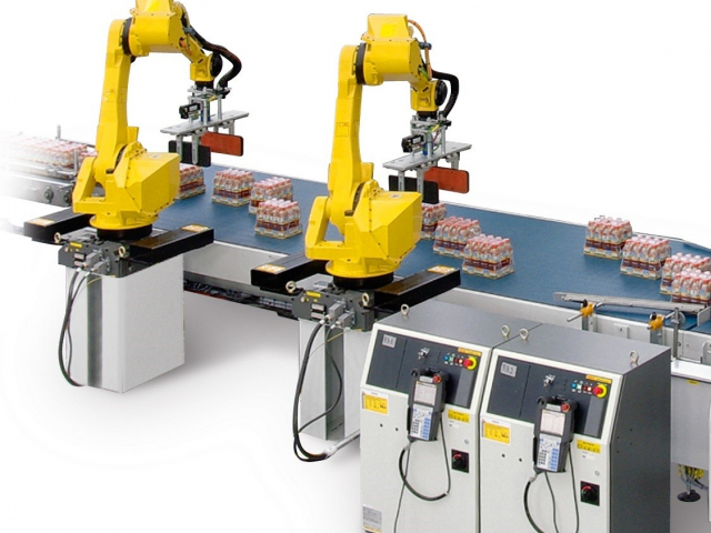 ROBOSMART™ inlet is made by one metering belt, flat table top, robots (1 - 2 or more) for the layer formation and a flat chain table for the layer pushing station. The robots gripping heads perform the layer pattern preparation (position and rotation). ROBOSMART™ Inlet ensures precise and highly repeatable movement with positive pack handling without shocks also when the inlet packs are not perfect in quality.