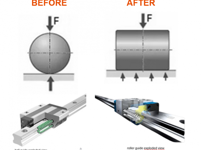 •Replacement of the original transfer arms fitted with linear ball guides by transfer arms fitted with linear rolling guides.