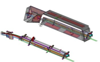 Decontamination of the preforms external side and of the necks by UV (6-12 lamps with UV filter glass). The preforms are exposed to shortwave radiation when they pass through the infeed rail.
