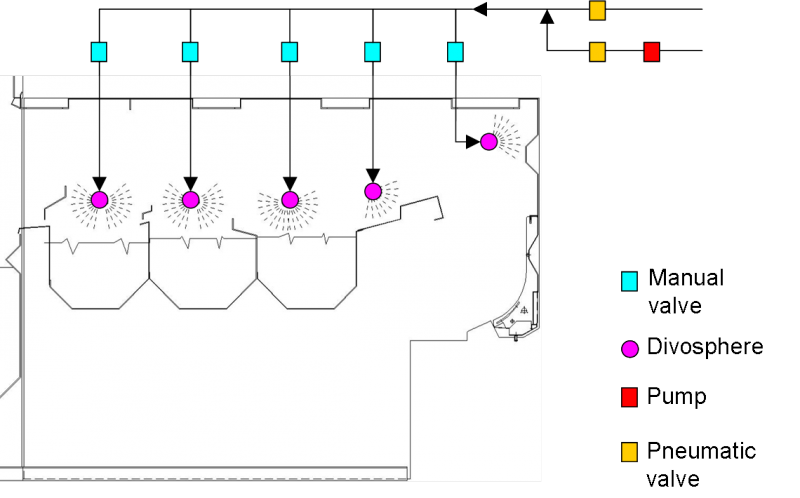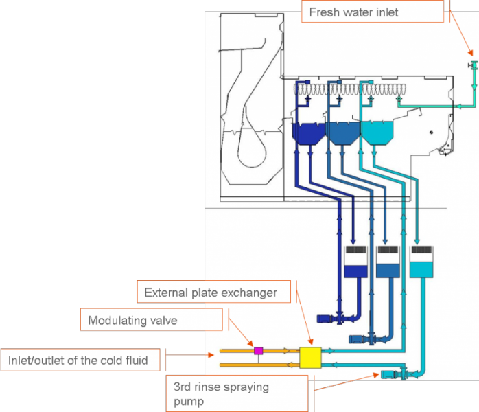 - Installation of a stainless steel tank near the bottlewasher’s rinse zone in order to recover around 40-50% of the water leaving the rinse zone in order to use it for crates washing.