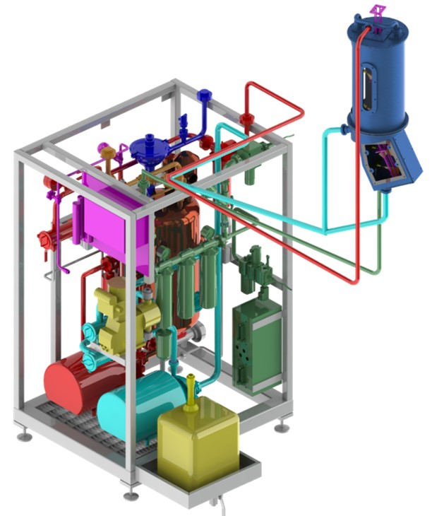 -L’eau est récuperée dans un réservoir qui la transfère au skid (plateforme)