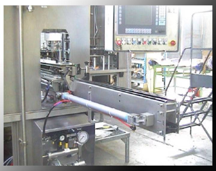 Système d'arrêt en douceur permettant de réduire les bruits liés à la phase de blocage. Système adapté aux cadences élevées et monté à l'entrée de la remplisseuse. Commande à piston pneumatique.