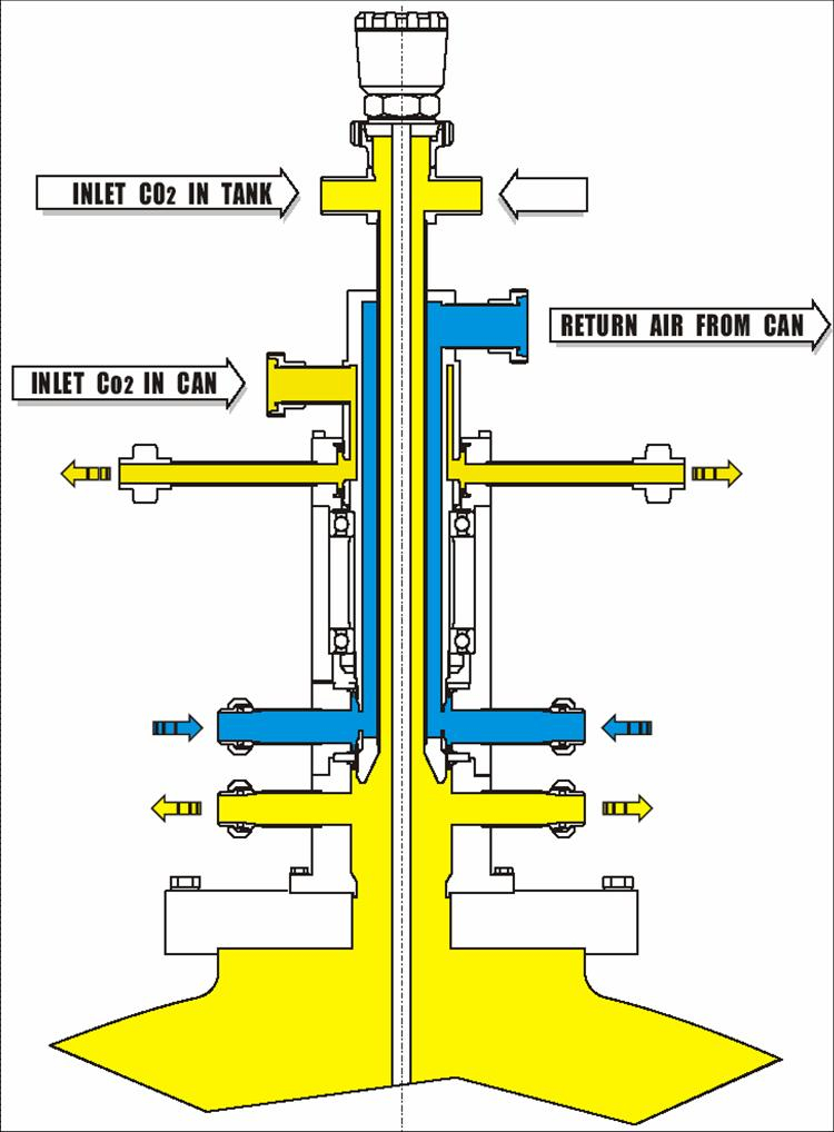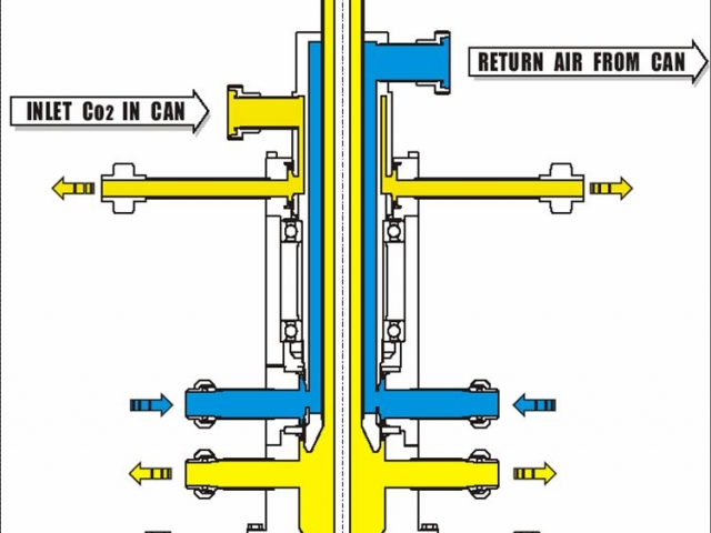 Nouveau collecteur central pour remplisseuses New Canfill.Ce groupe comprend le centrage sur double palier pour améliorer le glissement et le guide de la partie centrale. La partie centrale du glissement est couverte d’un revêtement céramique et les joints internes sont disponibles en polyuréthane conforme à la norme FDA. Les joints sont positionnés de sorte à être purgés en permanence.
