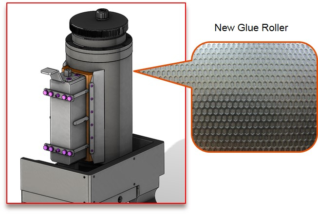 -Assurez la continuité de la production en remplaçant les composants obsolètes (les rouleaux de chrome ne sont plus fabriqués) par des tambours distributeurs de colle de dernière technologie
