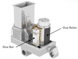 - Auto-adjustable glue bar with an integrated scraper system