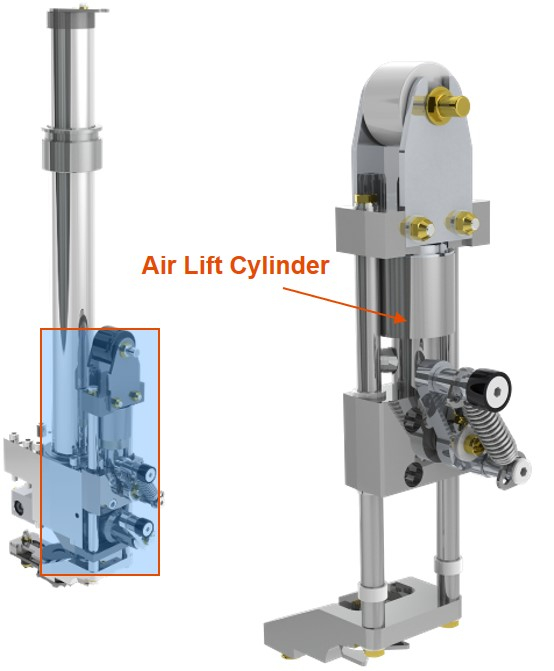 -A solução proposta consiste em substituir o acionamento de ar comprimido por acionamento mecânico com mola