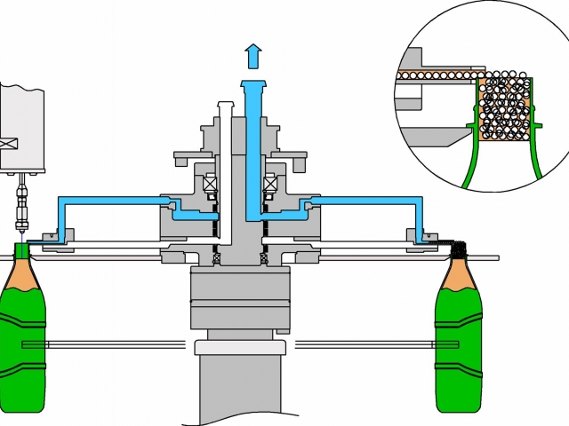 Sistema feito de:Sistema de recuperação de excesso de espuma no gargaloSistema de desinfecção