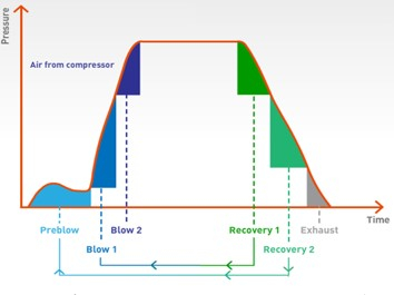 2015 - AirEco2 系统 PPTX (0.13 MB) 在...之后 机器类型 吹瓶机 MATRIX 选项与升级主题 成本优化 可持续发展 产品品质 复杂性3/3 Machine Sub-assemblyBlowing station 描述 -每个吹瓶站增加两个阀门,以实现循环/吹瓶的第二步 关键信息 降低吹瓶空气消耗并保持最终产品的安全性 适用机型范围 MATRIX blowers 好处 -由于空气经过过滤从而提高了组件的寿命 -对重用于预吹和吹瓶的空气进行过滤,从而提高最终产品的卫生性
