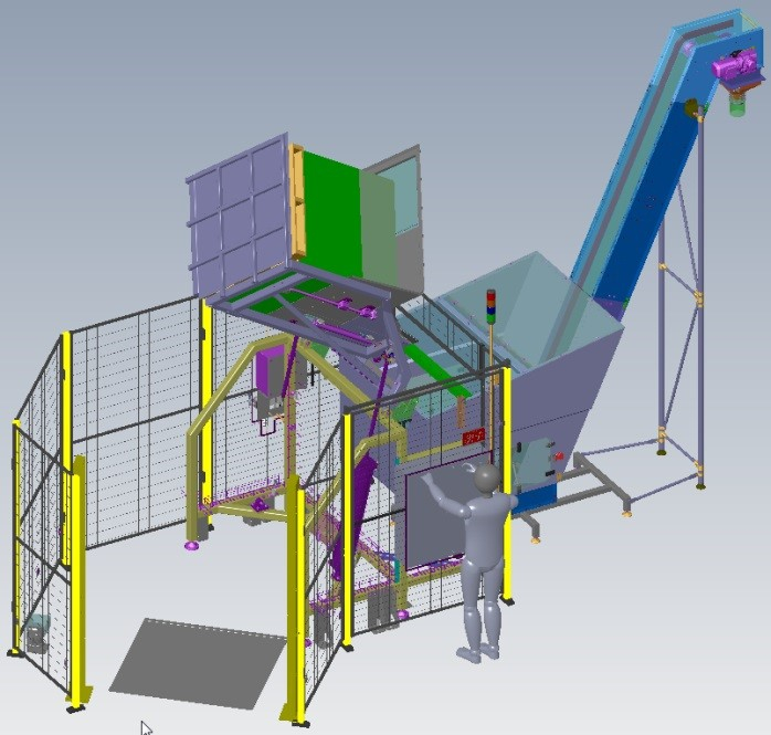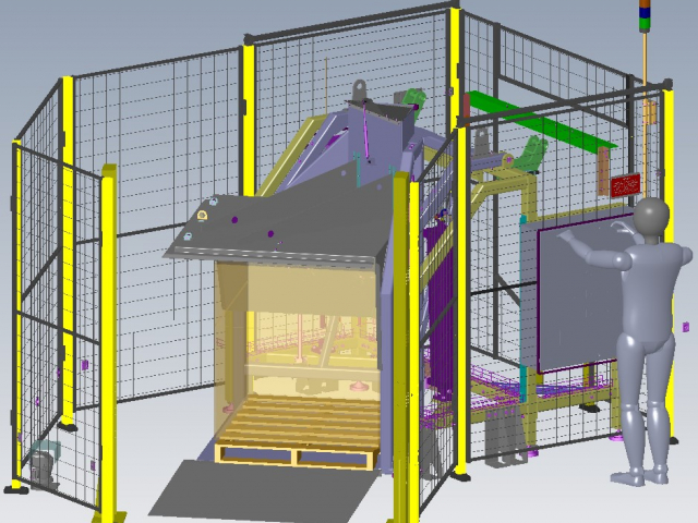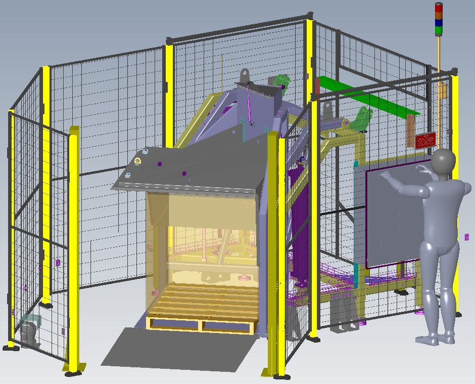 - The system is equipped with a security fence with electrical curtain and floor sweeping safety laser.