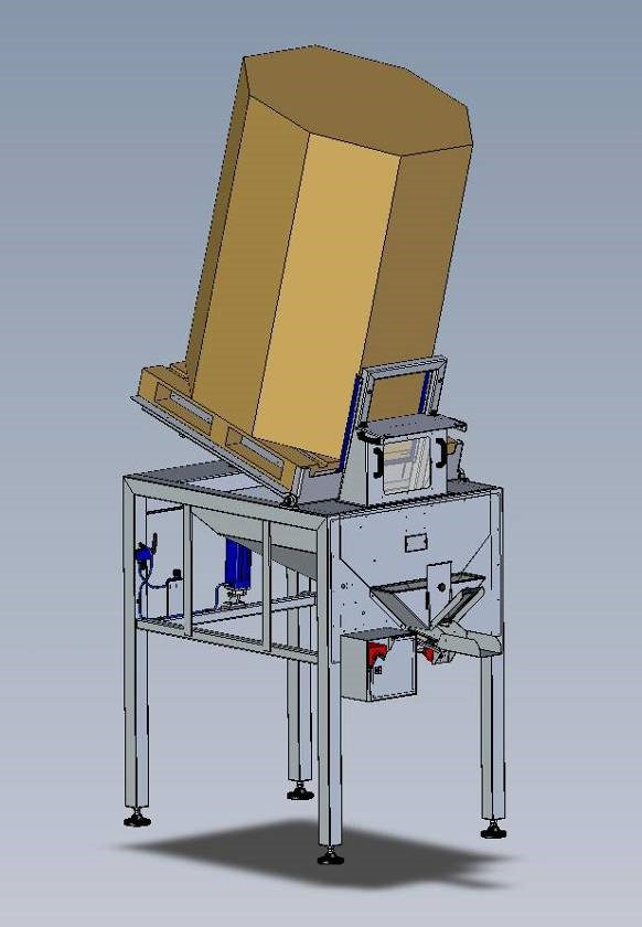 Allow feeding of the cap / crown feeder with a high capacity octabin. Operator is no more feeding the system by hand with small carton boxes.