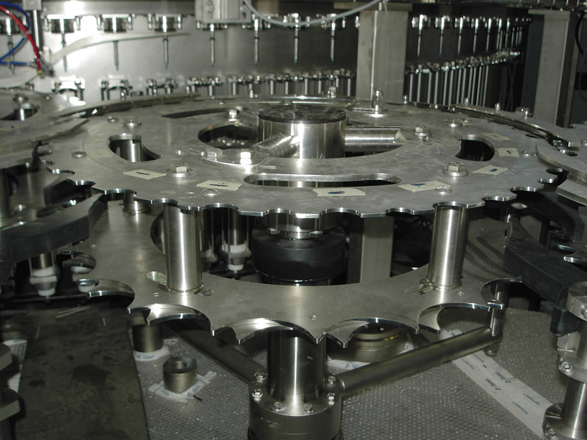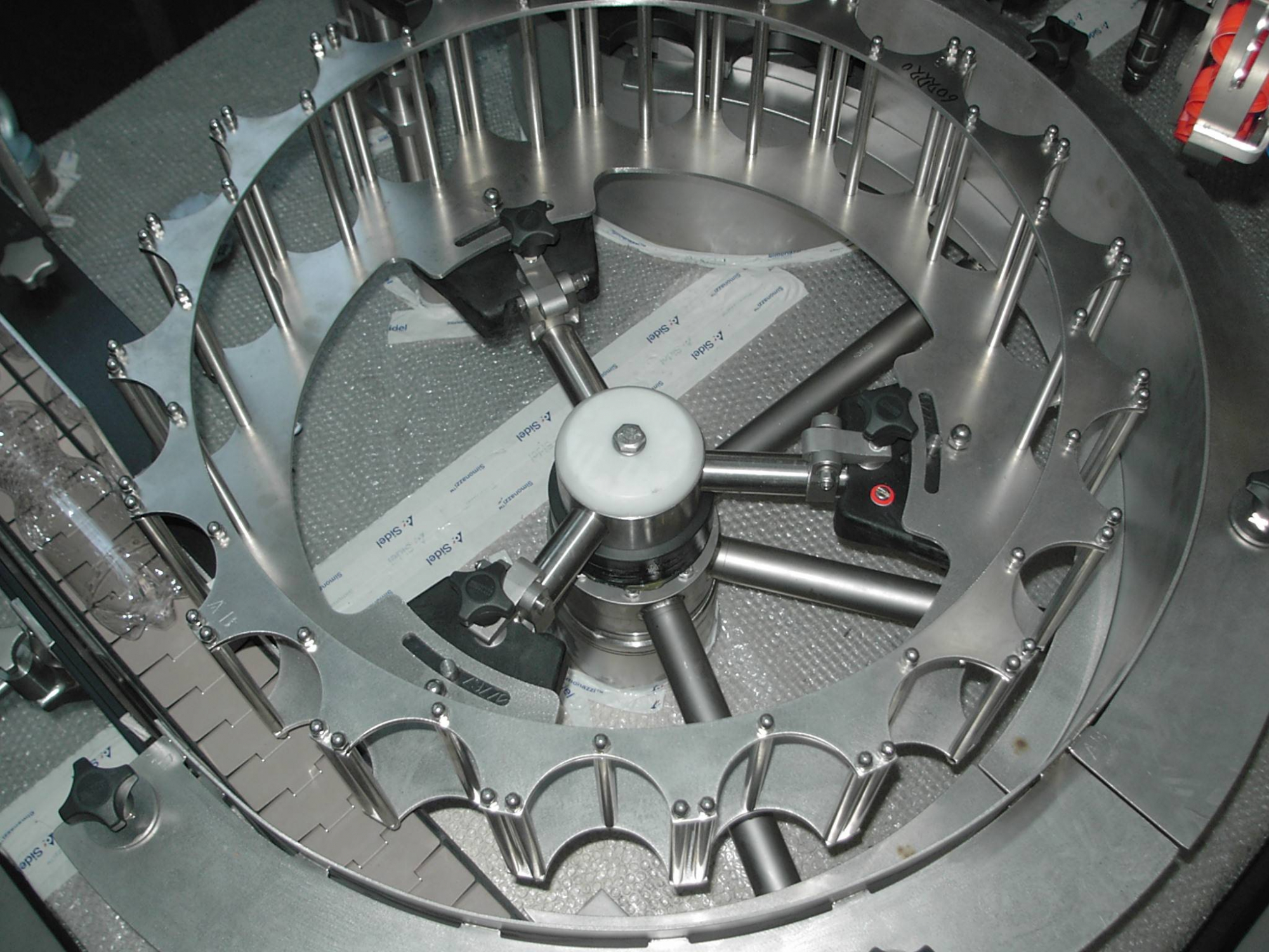 通过冲瓶机/灌装机/旋盖机装置处理PET瓶颈。不锈钢传送星轮具有可调整轮体,无需更换部件即可处理多种瓶型。冲瓶机/灌装机/旋盖机装置不需要进行高度调整,这将显著缩短瓶型转换时间。从玻璃瓶灌装机到PET瓶灌装机的典型转换。
