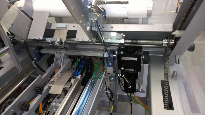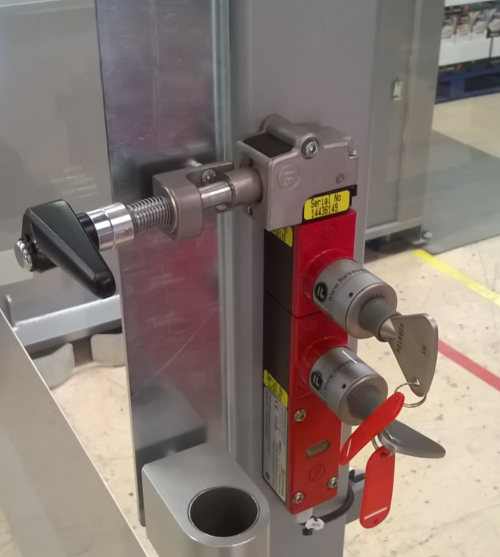 - Red locking latch on each guarding door.